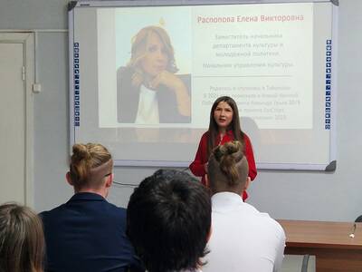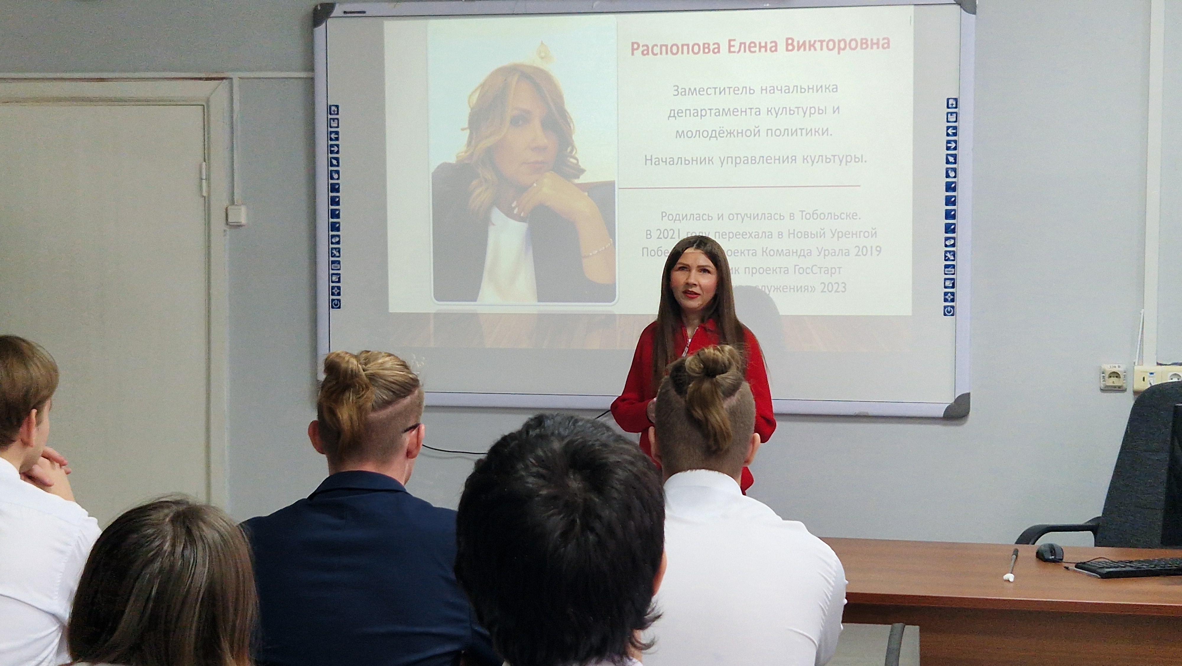 В рамках этого проекта 20 октября 2025 года в Ямальском региональном колледже состоялась встреча обучающихся с заместителем начальника департамента культуры и молодежной политики, начальником управления культуры Еленой Распоповой.